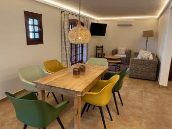 Das Ferienhaus hat eine Wohnfläche von ca. 80 qm und ist gut geeignet für Familien mit Kindern. Zu der freundlichen Einrichtung gehören auch ein Kinderbett und ein Kinderhochstuhl. Beide Schlafzimmer haben jeweils ein Bad en Suite. Außerdem ist das Ferienhaus mit Zentraheizung ausgestattet.Für Urlaub mit Freunden haben Sie die Möglichkeit direkt nebenan ein weiteres Ferienhaus zu mieten: Villa mit Pool für bis zu 8 Personen (162).