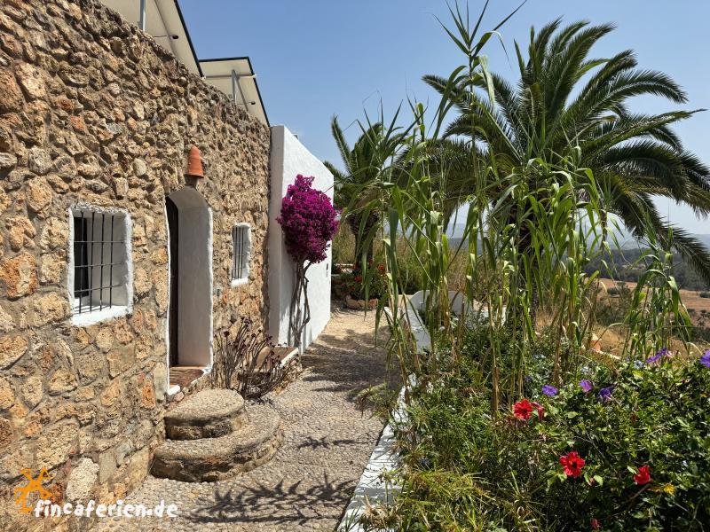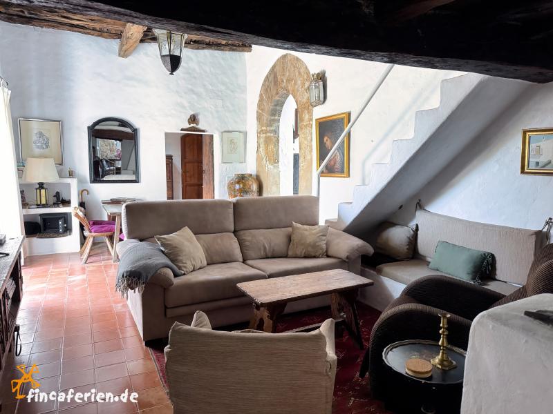 Finca Can Lucas ist kein perfektes Ferienhaus im klassischen Sinne – sie ist ein Ort mit Seele. Ihre Grundmauern stammen aus dem 13. Jahrhundert, das Mauerwerk wurde einst mit Meersalzwasser verarbeitet – ein Zeichen echter ibizenkischer Baukunst. An manchen Stellen „blühen“ die Wände noch heute – ein lebendiges Zeugnis der Vergangenheit.Die rußgeschwärzten Holzbalken stammen von Bäumen, die vor Jahrhunderten auf der Insel wuchsen. Bei der Renovierung wurde bewusst auf den ursprünglichen, schlichten Stil eines ibizenkischen Bauernhauses gesetzt – ohne künstliche Glätte, dafür mit Charakter.