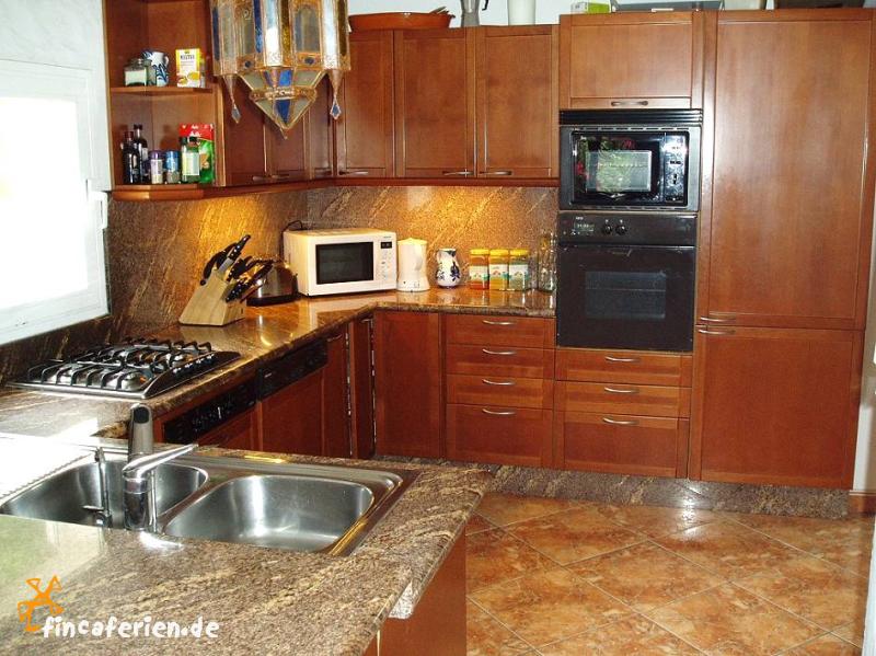 • Küche mit Gasherd, Backofen, Mikrowelle, Spülmaschine, Kühlschrank