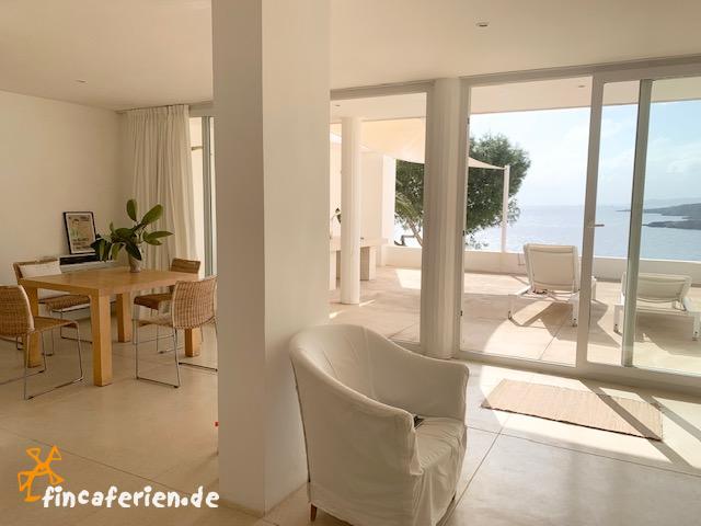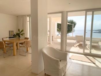 Die Ferienwohnung am Meer bietet ein geräumiges Wohnzimmer mit Essplatz, an den sich die offene Küche anschließt. Besonders angenehm: den Gästen stehen neben den drei Schlafzimmern, drei getrennte Duschbäder zur Verfügung. Zur modernen Ausstattung gehören Internetzugang, Waschmaschine, Geschirrspüler und Sat-TV. Eine Klimaanlage sorgt an den heißen, als auch den kühleren Tagen des Jahres für angenehme Temperaturen. Zwei möblierte Terrasse mit fantastischem Panorama- und Meerblick gehören ebenfalls zur modernen Ferienwohnung und sind der richtige Platz, um zu relaxen und den Ibiza Urlaub zu genießen.